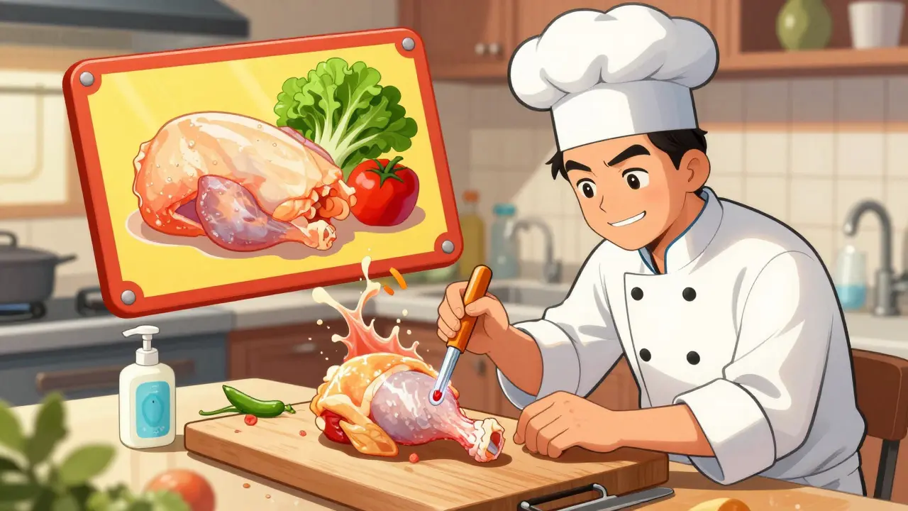- Viande ou œufs mal cuits : la volaille doit atteindre 74 °C à cœur. Si elle est encore rose à l’intérieur, le Salmonella ou le Campylobacter survivent.
